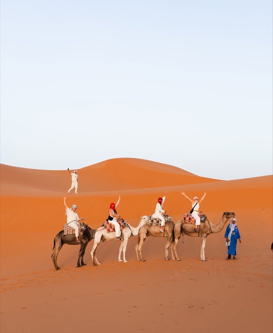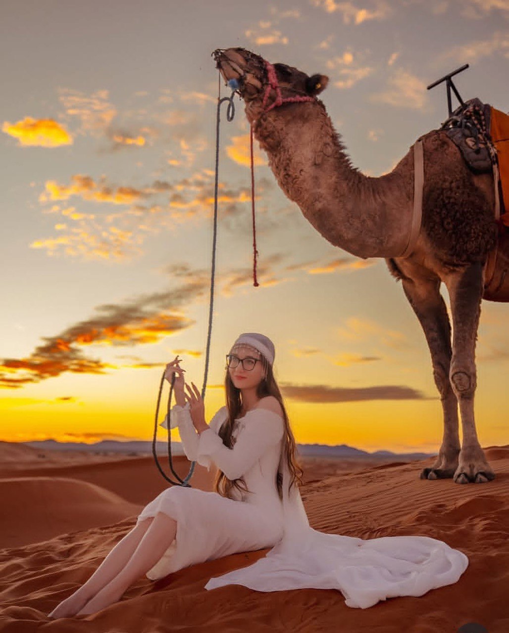 Enjoy a peaceful early-morning camel ride across the golden dunes as the sun rises over the Sahara. The experience includes a round-trip camel ride of approximately one hour (30 minutes going, 30 minutes returning), allowing you to enjoy the calm, fresh desert air and beautiful panoramic views.