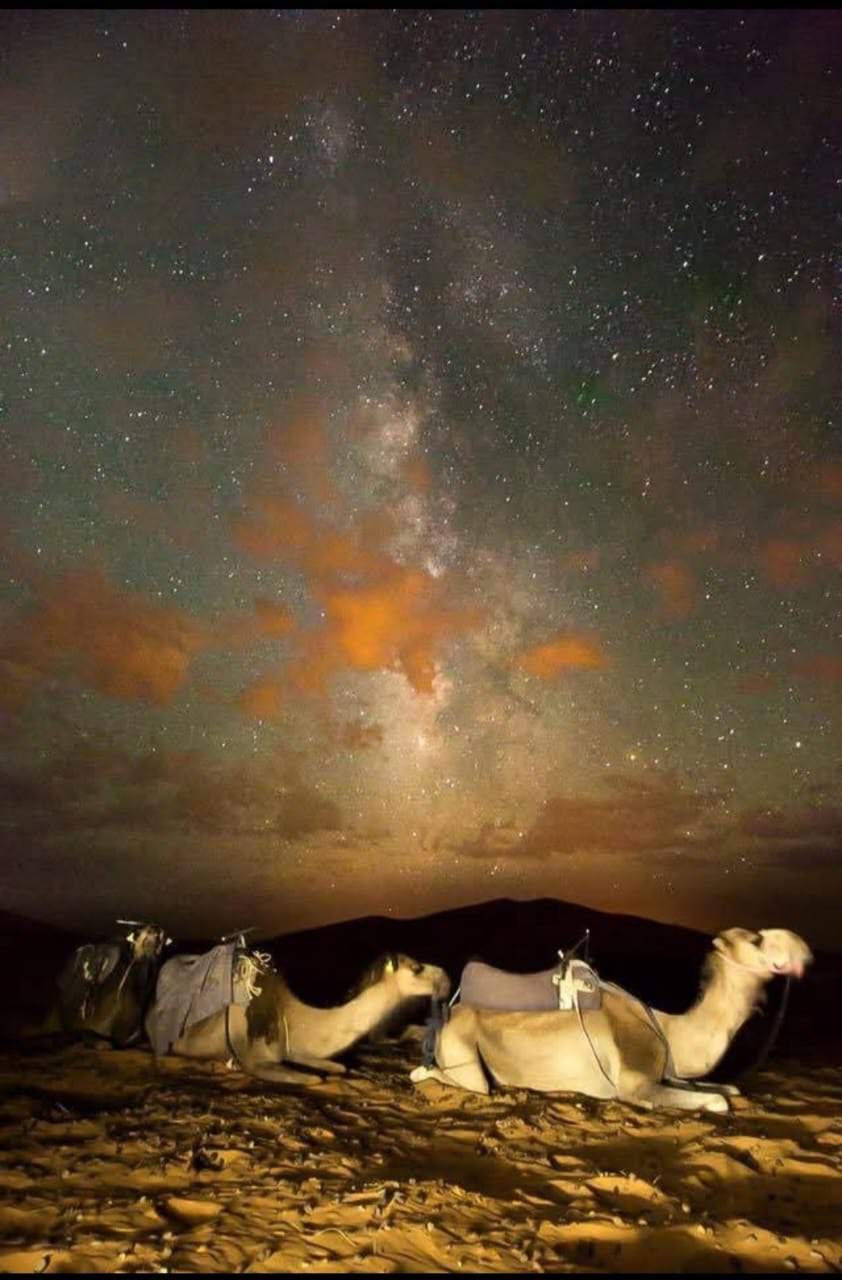 Experience the magic of the desert at sunset with a camel ride through the dunes of Merzouga. This option also includes a round-trip camel ride of around two hours, with time to relax, take photos, and admire the changing colors of the sky as the sun sets behind the dunes.