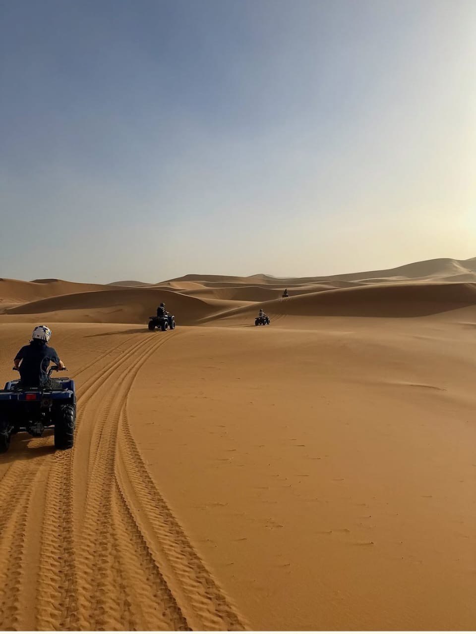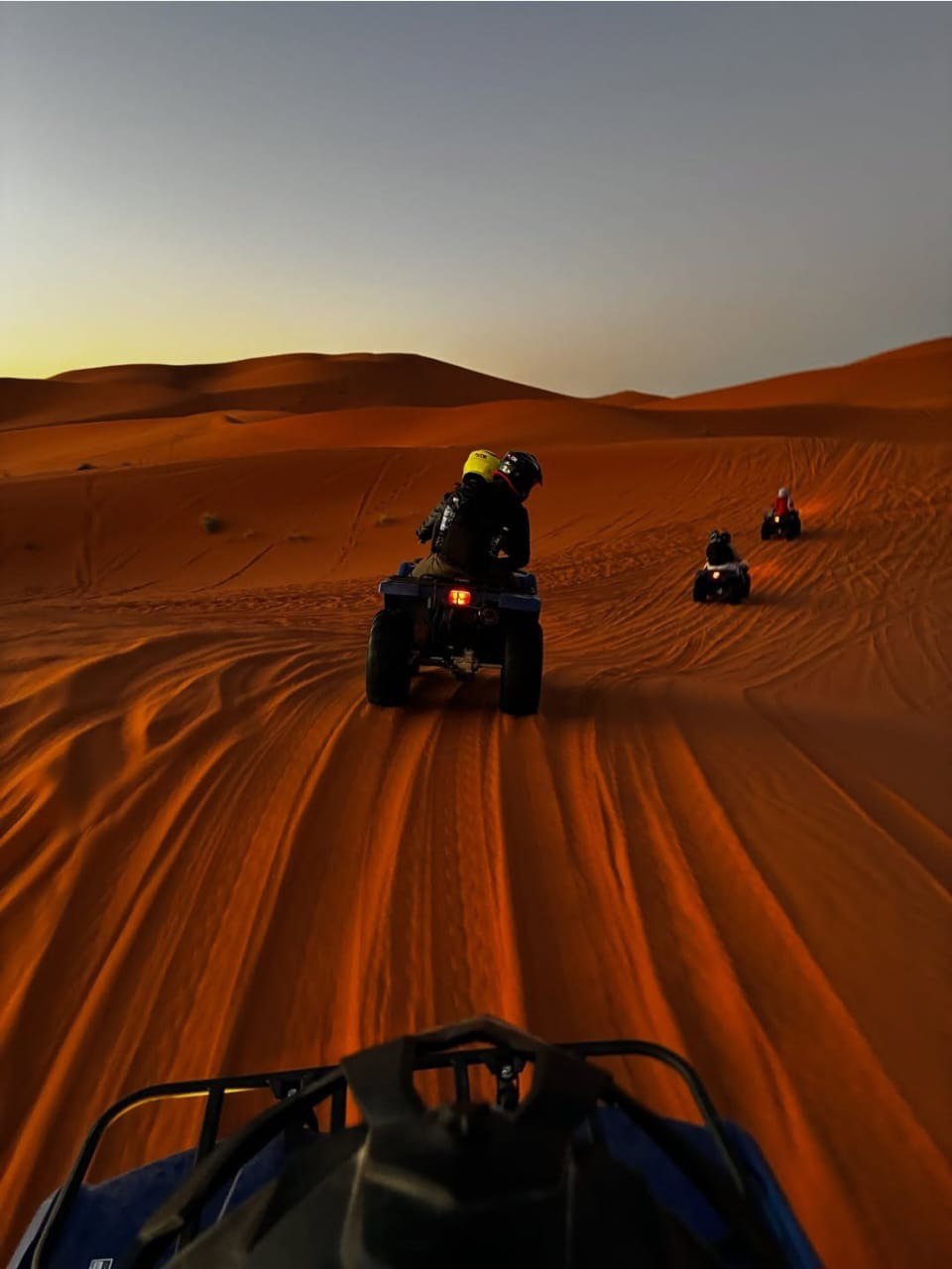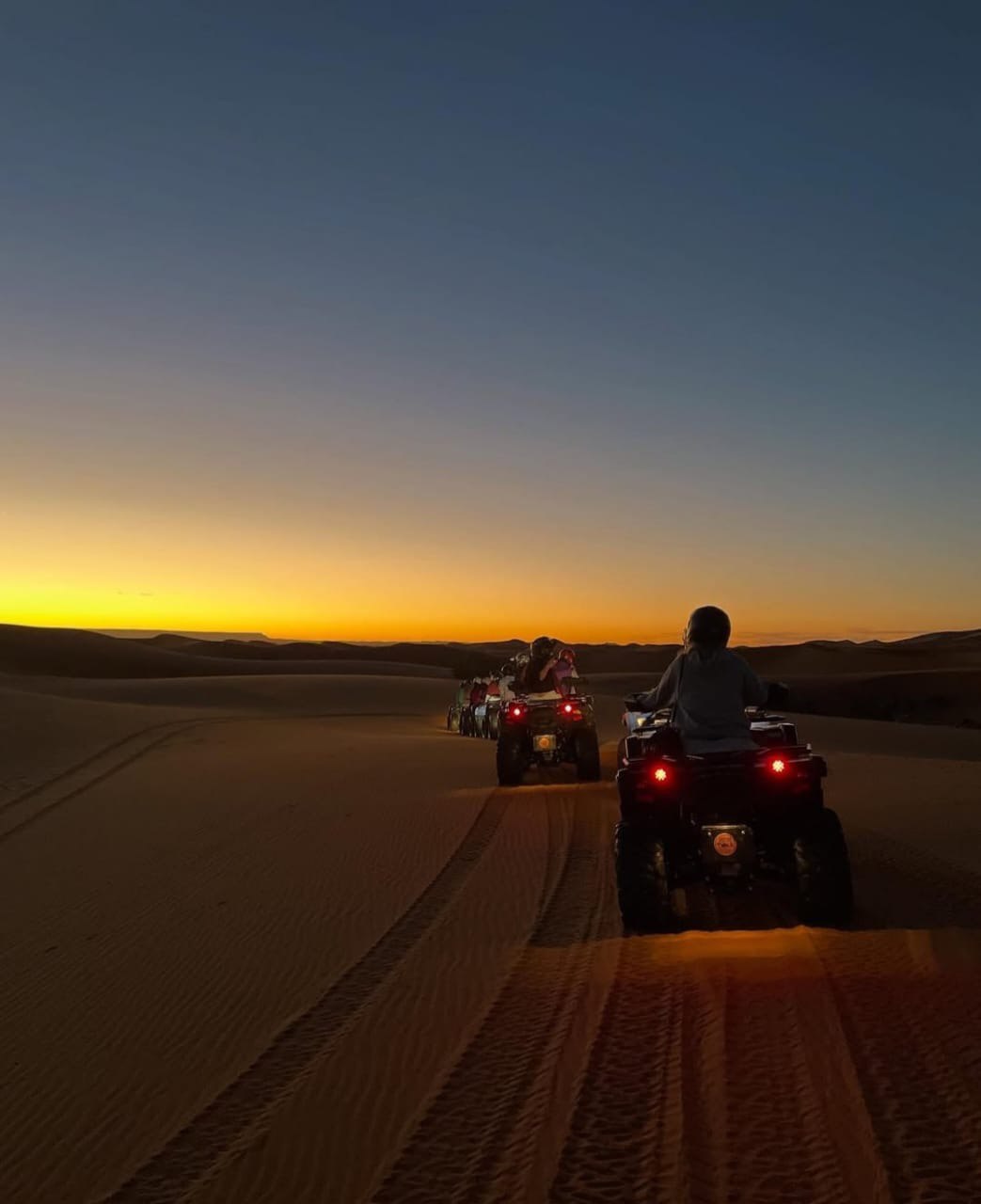 Experience the thrill of quad biking (ATV) in the Merzouga Desert and explore the vast golden dunes in an exciting and safe way. This activity is ideal for adventure lovers who want to combine speed, freedom, and breathtaking desert landscapes.